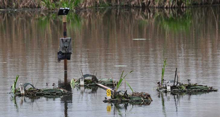 Um die Ursachen des schlechten Bruterfolges der Trauerseeschwalbe am Unteren Niederrhein zu ermitteln, wurden zwischen 2011 und 2017 zahlreiche Nistflöße mit Hilfe von Fotofallen überwacht. Ziel der Überwachung war es, mögliche Prädatoren nachzuweisen, die den Verlust von Eiern und/oder Küken verantwortlich sind.