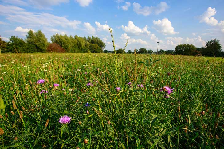 Deshalb bemühen wir uns sehr intensiv darum entsprechende Flächen zu bekommen um unsere Ziele langfristig zu sichern. Im Herbst 2016 war es schließlich soweit. Wir konnten eine 6.000 qm große Parzelle in der Isselniederung im Kreis Wesel erwerben. Zahlreiche Spenden, die Förderung der Bezirksregierung Düsseldorf und die größzügige Unterstützung der Stöckmann-Stiftung ermöglichten es uns diese Fläche zu erwerben. Im darauffolgenden Frühjahr wurde diese zuvor intensivst genutzte Parzelle entsprechend bearbeitet und mit regionalem Saatgut der Fa. Rieger-Hofmann eingesät.