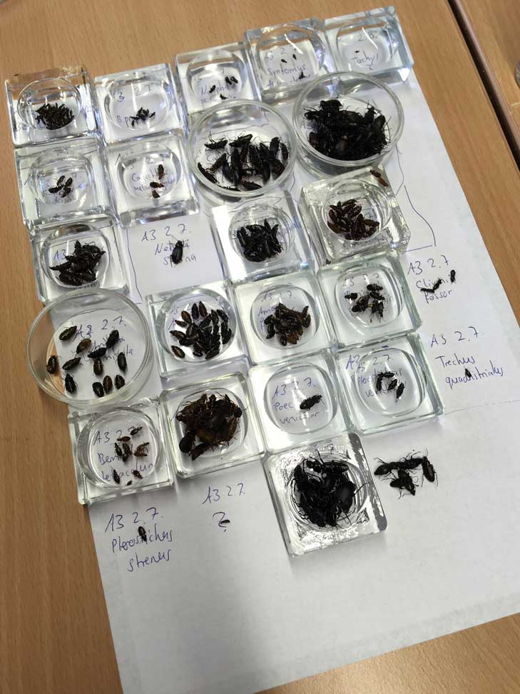 Die Ergebnisse der Untersuchung an Laubkäfern weisen einen deutlichen Verlust an Artenvielfalt, aber auch an Insektenmasse nach: In den Bodenfallen wurden vor 20 Jahren noch 69 Laufkäferarten mit 23.782 Individuen gefangen, während es im Jahr 2019 nur noch 63 Arten mit 9.061 Individuen waren.
