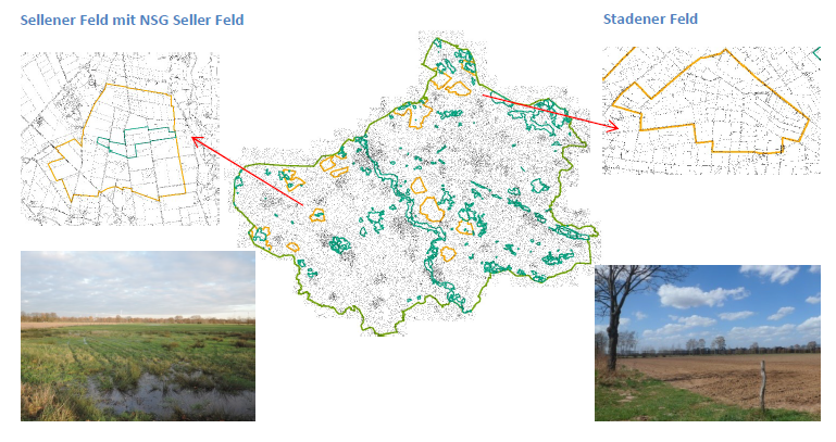 Grundlage für die Umsetzung von Maßnahmen war eine modellhafte Zusammenarbeit von Naturschutz und Landwirtschaft im Kreis Steinfurt in den beiden Projektgebieten „Stadener Feld“ (ca. 680 ha) und „Sellener Feld“ (ca. 390 ha).