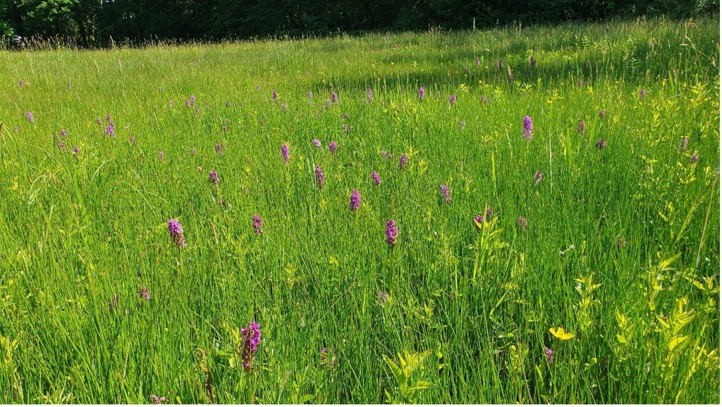 Wiese mit Breitblättrigem Knabenkraut (Dactylorhiza majalis); Foto: Georg Verbücheln
