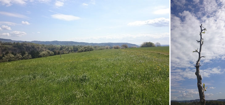 Die neu erworbene Wiese wird seit dem Erwerb wieder extensiv bewirtschaftet (als „Heuwiese“ mit ein- bis zweischüriger Mahd und/oder Beweidung, je nach Witterung – ohne Düngung). Zudem wurden 5 hochstämmige Birnbäume mit alten Sorten gepflanzt. Allerdings wird es noch mindestens 15 bis 20 Jahre dauern bis die Bäume nennenswerte Erträge liefern.